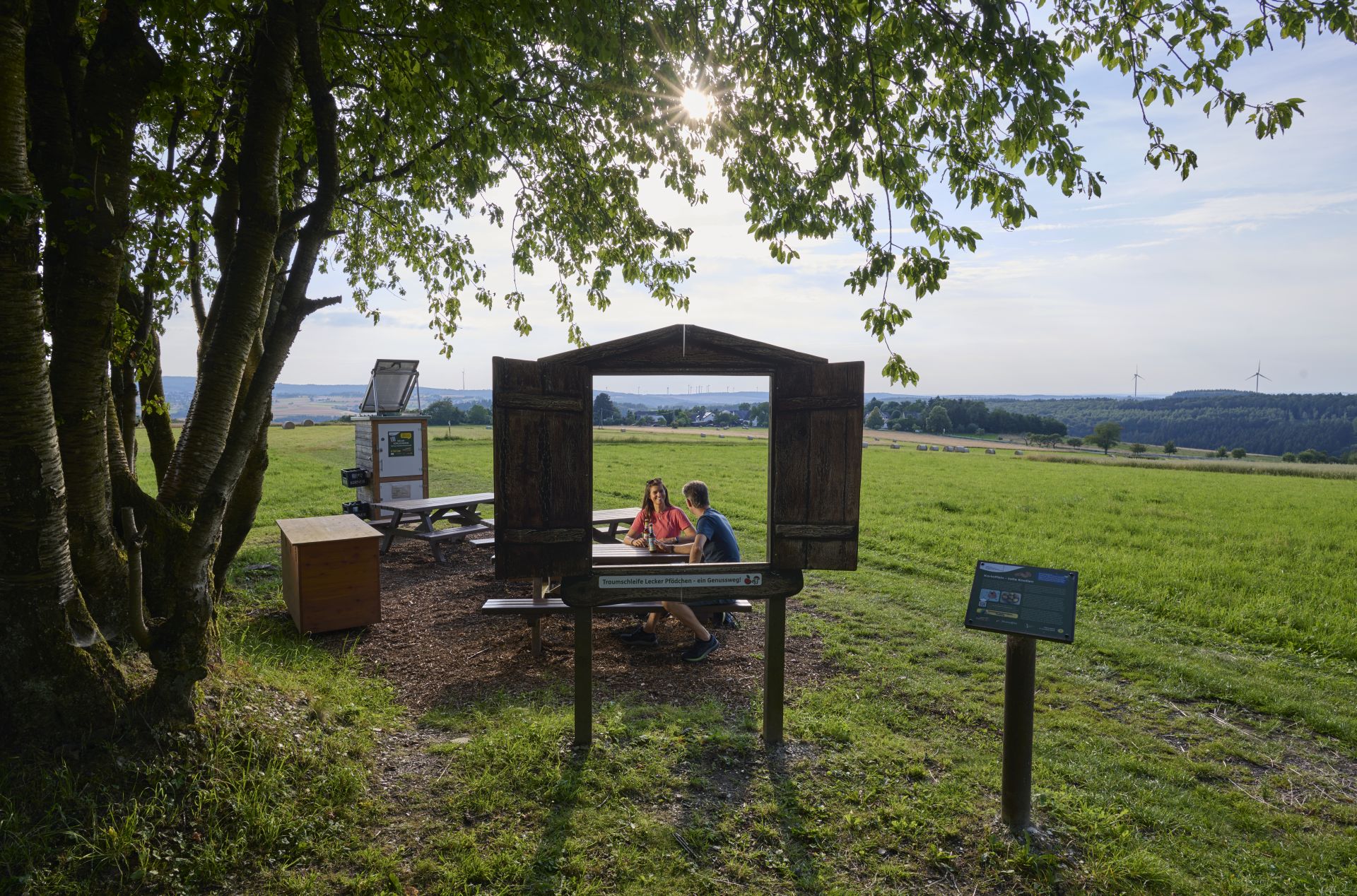 Sechs am Weg errichtete „Genuss-Fenster eröffnen immer neue Aus- und Einsichten und geben auf Infotafeln Einblicke in die Hunsrück-Küche und informieren über regionale Produkte.